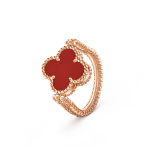 Crafted in 18K yellow gold, the ring features the signature Alhambra motif with its signature hand-polished contours and radiant finish. Set with luminous mother-of-pearl or other precious stones, this ring offers a captivating combination of elegance and creativity. The sculptural design creates a striking visual effect, making it a true statement piece for the bold, sophisticated wearer.