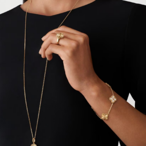 The Magic Alhambra long necklace highlights a single, oversized clover motif that symbolizes luck, harmony, and timeless beauty. With its elegant proportions and refined detailing, this piece reflects Van Cleef & Arpels’ poetic craftsmanship and iconic design language.