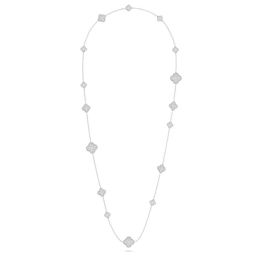 The Magic Alhambra long necklace with 16 motifs combines iconic design, refined craftsmanship, and enduring elegance, making it a timeless addition to any jewelry collection.