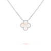 Perfectly proportioned and instantly recognizable, the pendant features the classic Alhambra shape—soft curves, balanced symmetry, and an aura of understated sophistication. Each motif is carefully selected and crafted to highlight the natural beauty of its material.