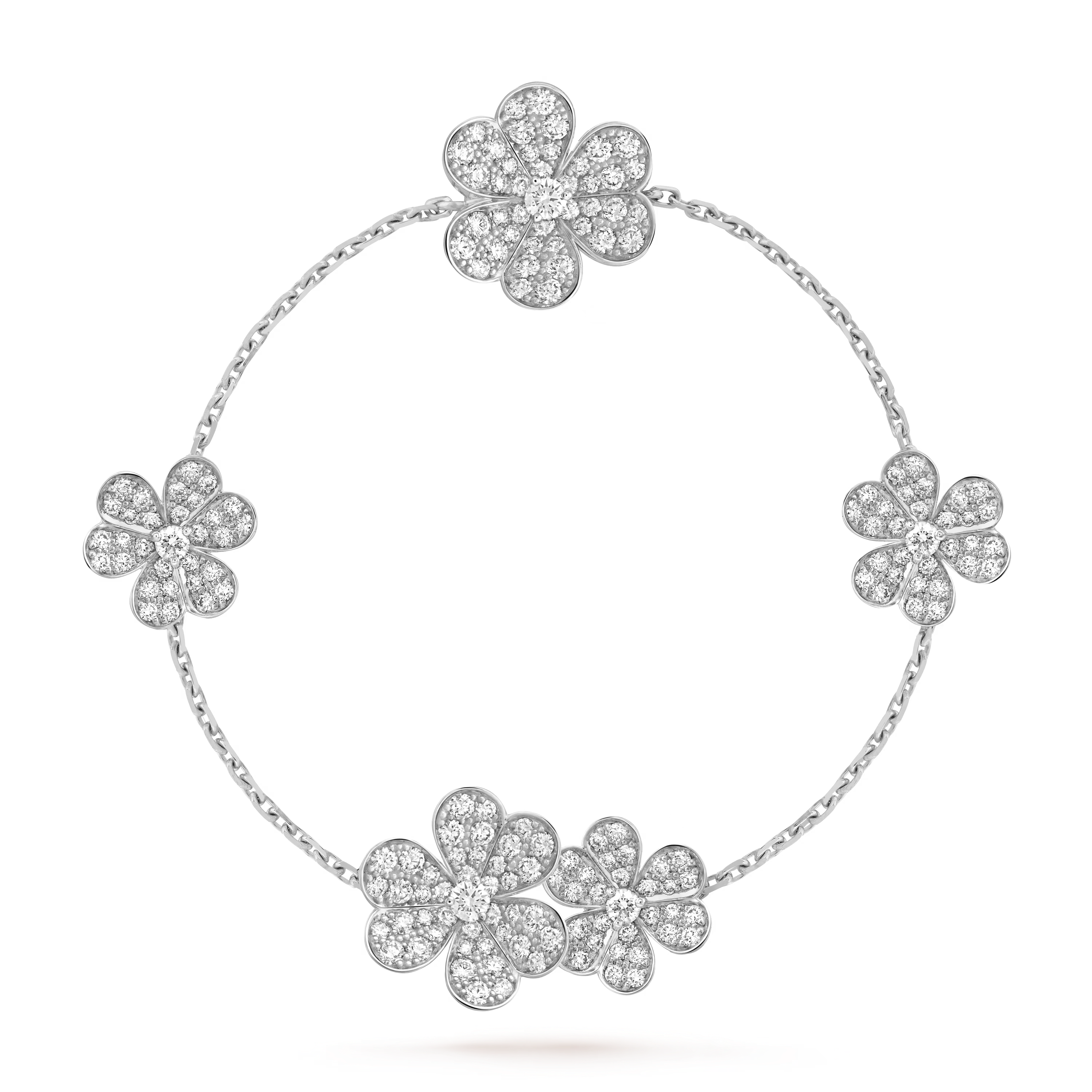 A signature of the Frivole collection, the petals feature a high-polish, mirror-like finish. This surface catches and reflects light with every movement, enhancing the bracelet’s radiance and giving it a lively, dancing sparkle.