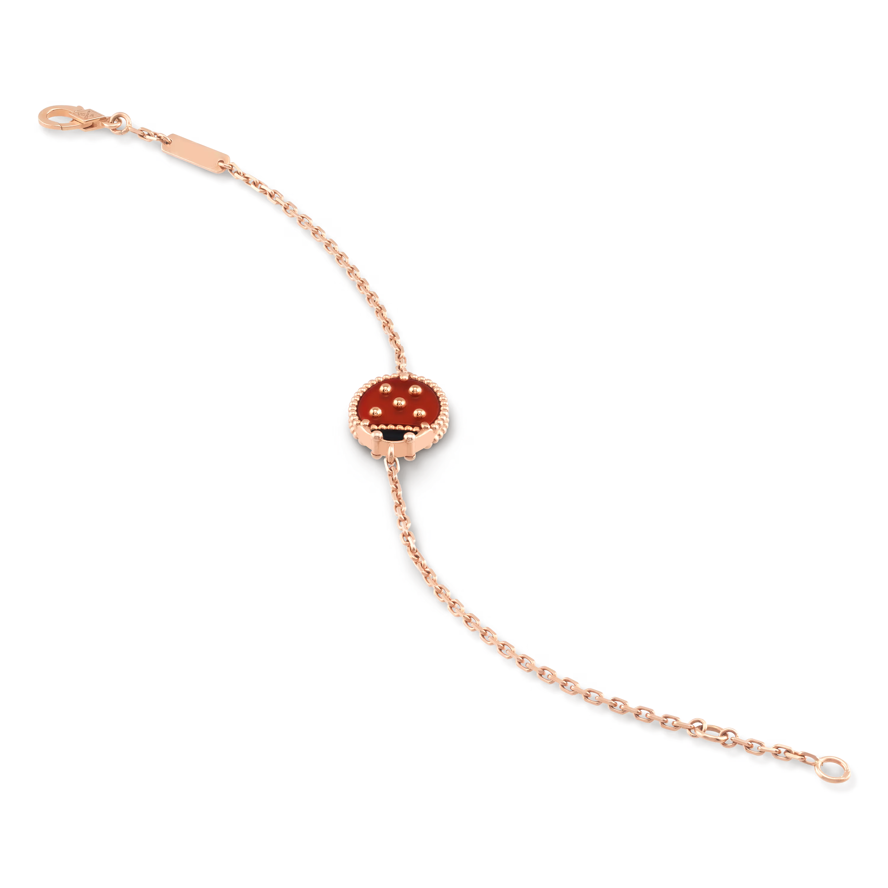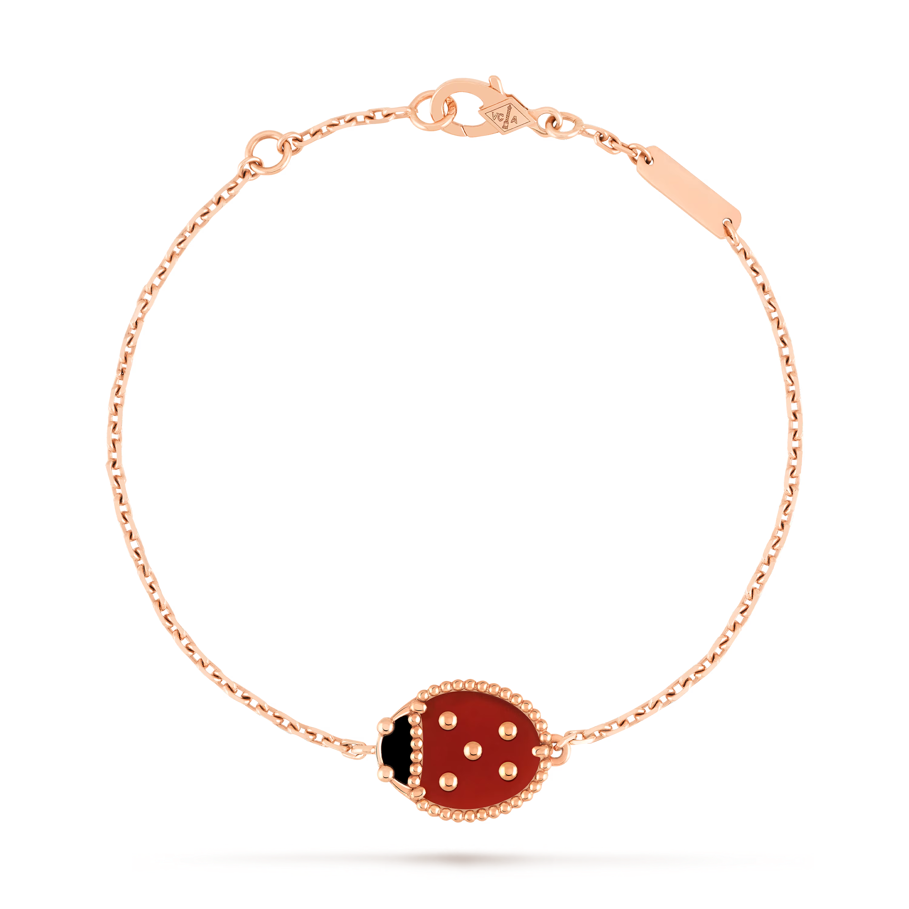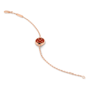At the heart of the bracelet sits a delicately sculpted ladybug motif. With its wings softly closed, it conveys tranquility and quiet happiness, capturing a moment of stillness in nature’s vibrant rhythm.
