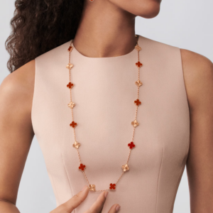 Crafted in 18K rose gold, each motif is inlaid with luminous carnelian, carefully selected for its rich, warm hue and natural luster. The signature hand-polished gold contours highlight the refined craftsmanship and exquisite attention to detail that define the Maison.