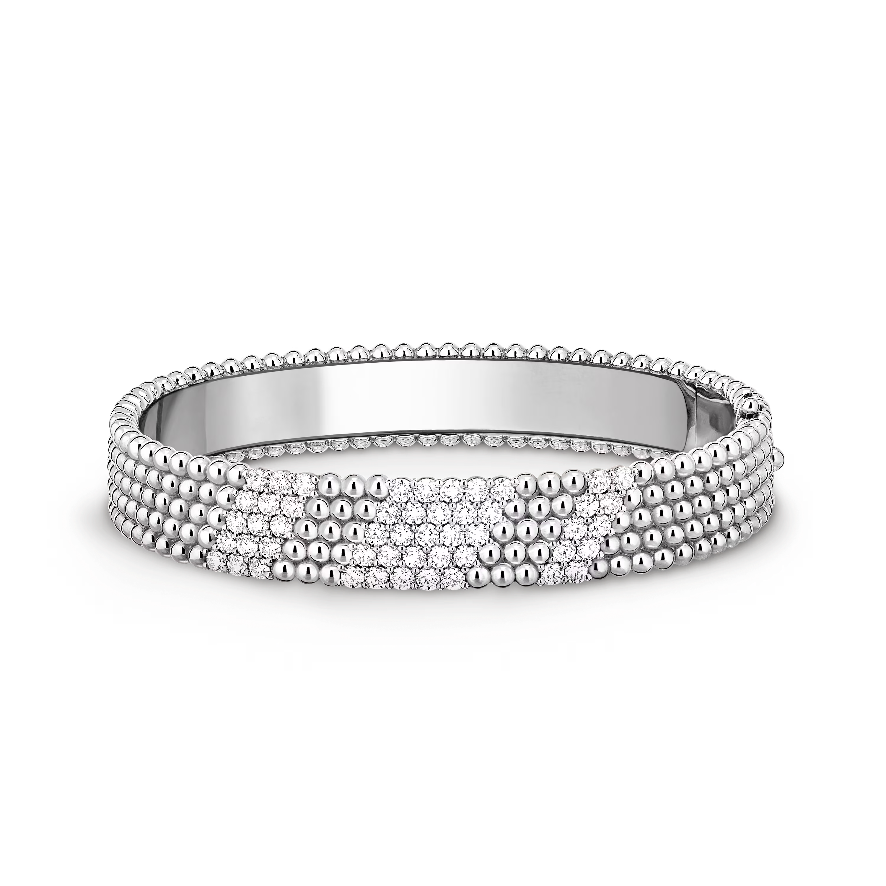 Designed for comfortable, fluid wear, the bracelet naturally adapts to the wrist’s movements. It can be worn alone as a statement piece or paired with other Perlée or diamond creations for an effortlessly elegant, layered look suitable for both day and evening wear.