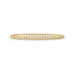 Each gold bead is meticulously polished to achieve a smooth, radiant finish. The rhythmic repetition of beads creates a dynamic play of light, a signature of the Perlée collection that evokes movement and joy through texture and volume.
