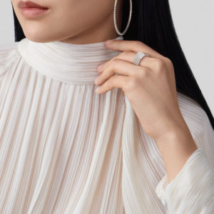 Both architectural and feminine, the Perlée Diamonds Ring offers a luxurious presence on the hand—substantial yet elegantly balanced. Whether worn as a statement piece or paired with other Perlée creations, it brings a luminous, joyful energy to any look.