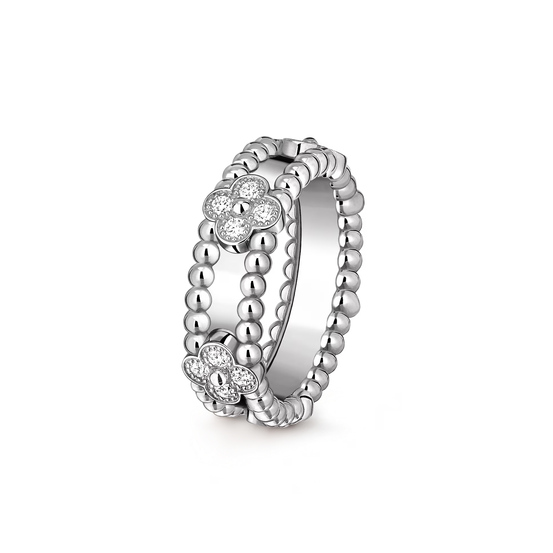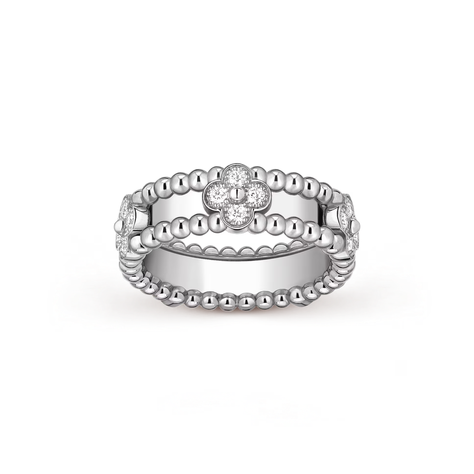 The Perlée Sweet Clovers Ring offers a perfect blend of lightness and luxury, combining playful charm with Van Cleef & Arpels’ timeless elegance. It can be worn alone for a refined statement or paired with other pieces from the Perlée or Sweet Alhambra collections for a layered, harmonious look.