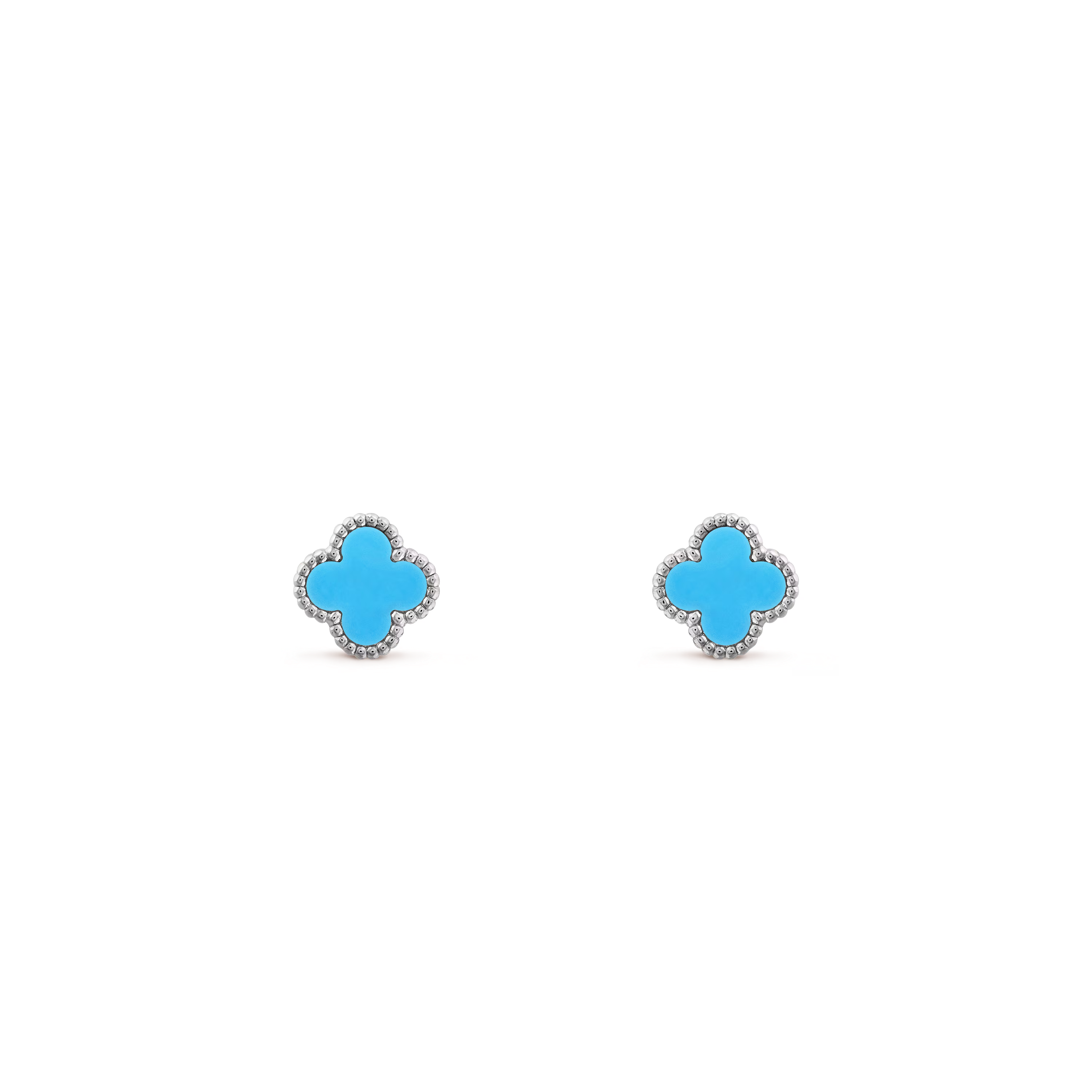 Sweet Alhambra Earstuds – 18K White Gold & Turquoise**