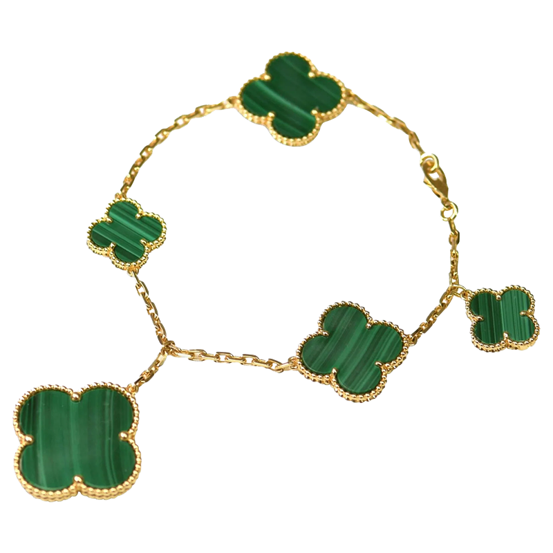 Elegant and meaningful, the Magic Alhambra Malachite 5 Motif Bracelet embodies a poetic vision of jewelry—where nature, luck, and timeless design come together to create an enduring symbol of refined luxury.