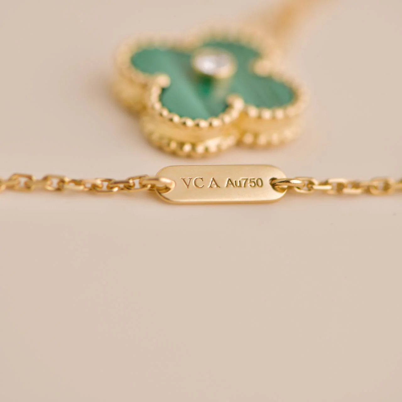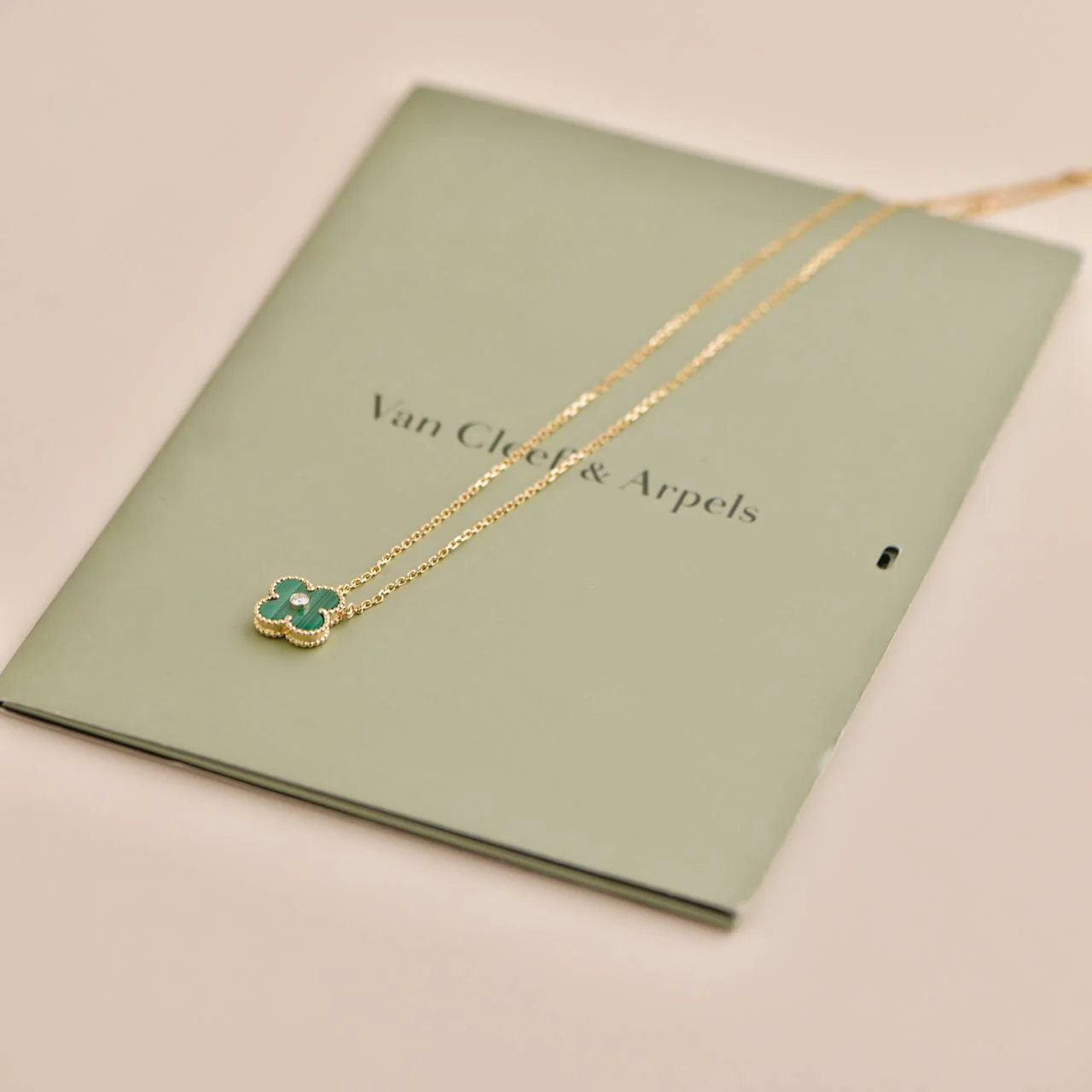 Vintage Alhambra Diamond Malachite Pendant Necklace