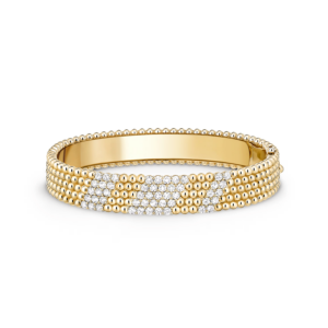 Each four-leaf clover motif is framed by the collection’s iconic beaded edge. This distinctive detail adds depth, texture, and a sculptural dimension, enhancing the bracelet’s instantly recognizable character.