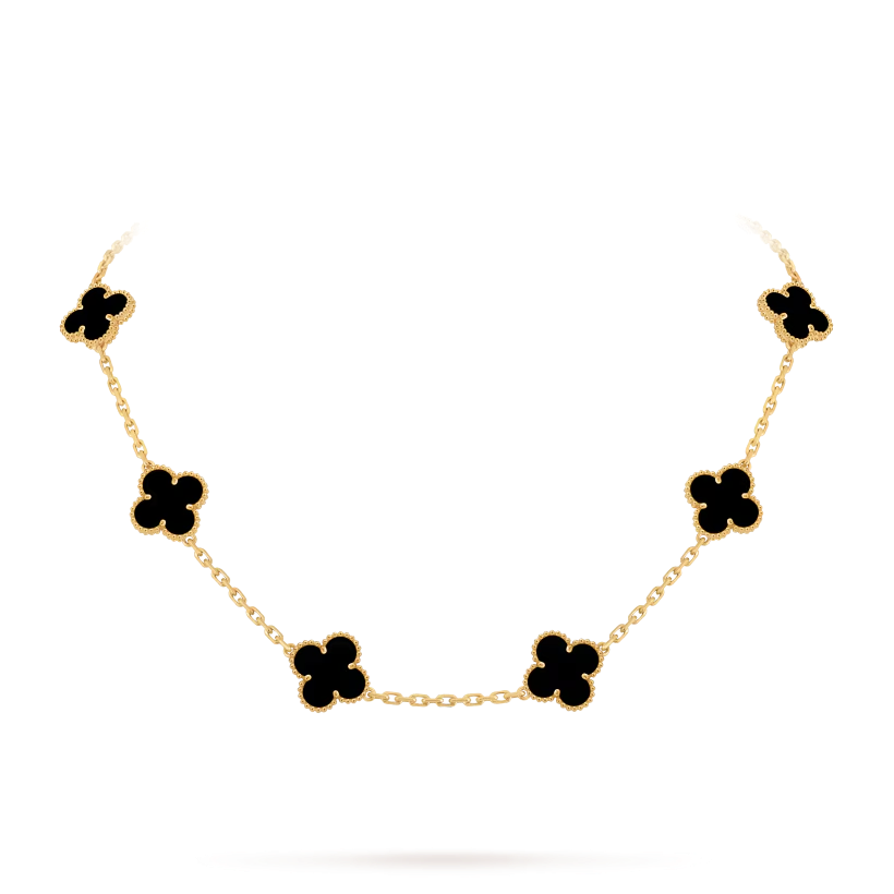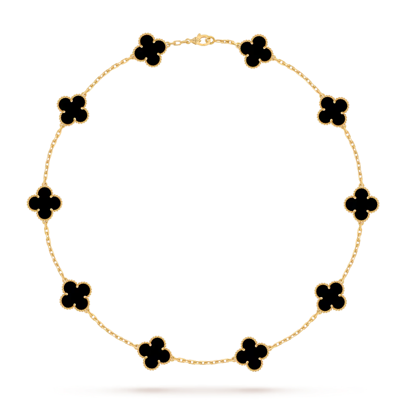 The Vintage Alhambra necklace with 10 motifs is an iconic expression of elegance and craftsmanship. With its symbolic design and timeless beauty, it is a cherished addition to any fine jewelry collection.
