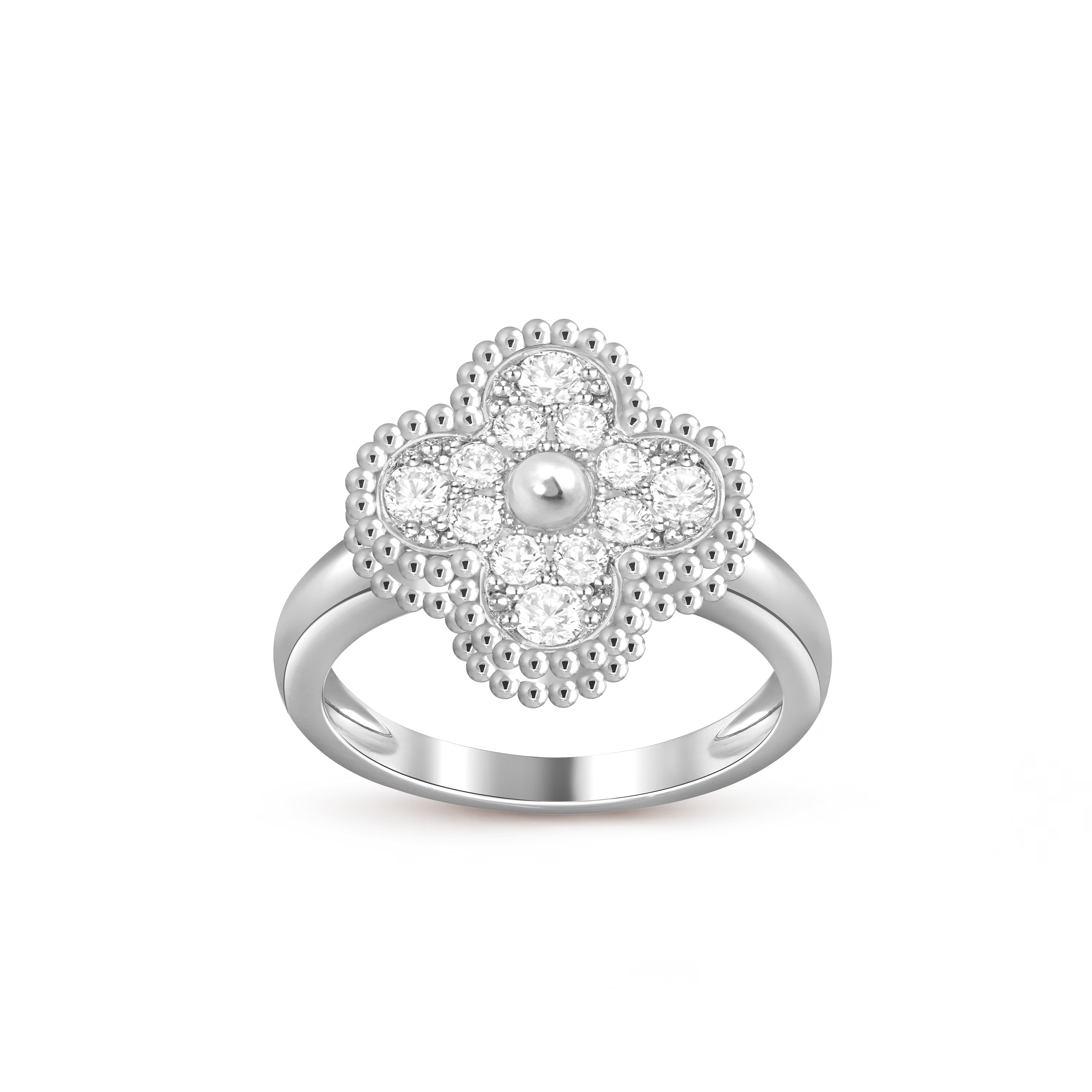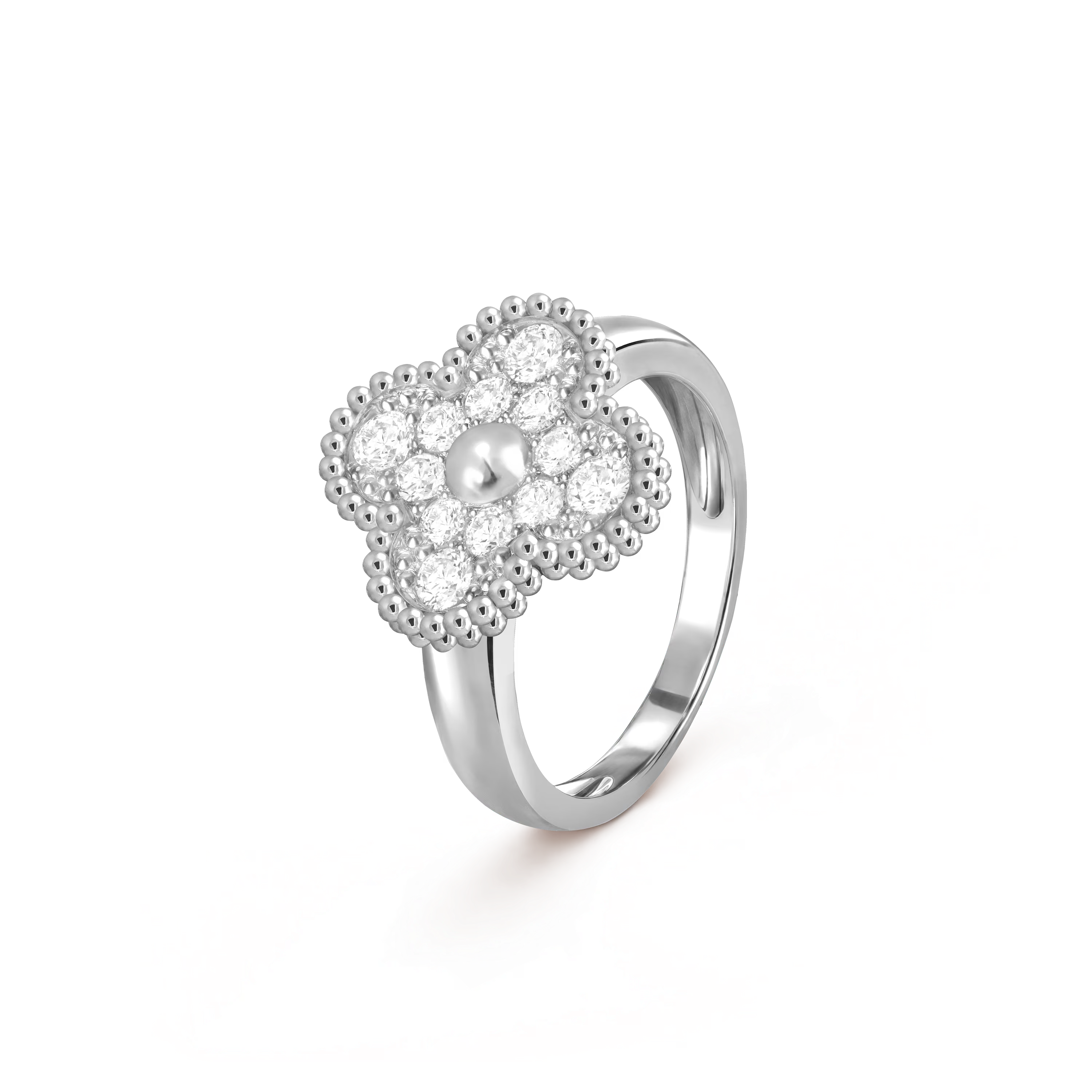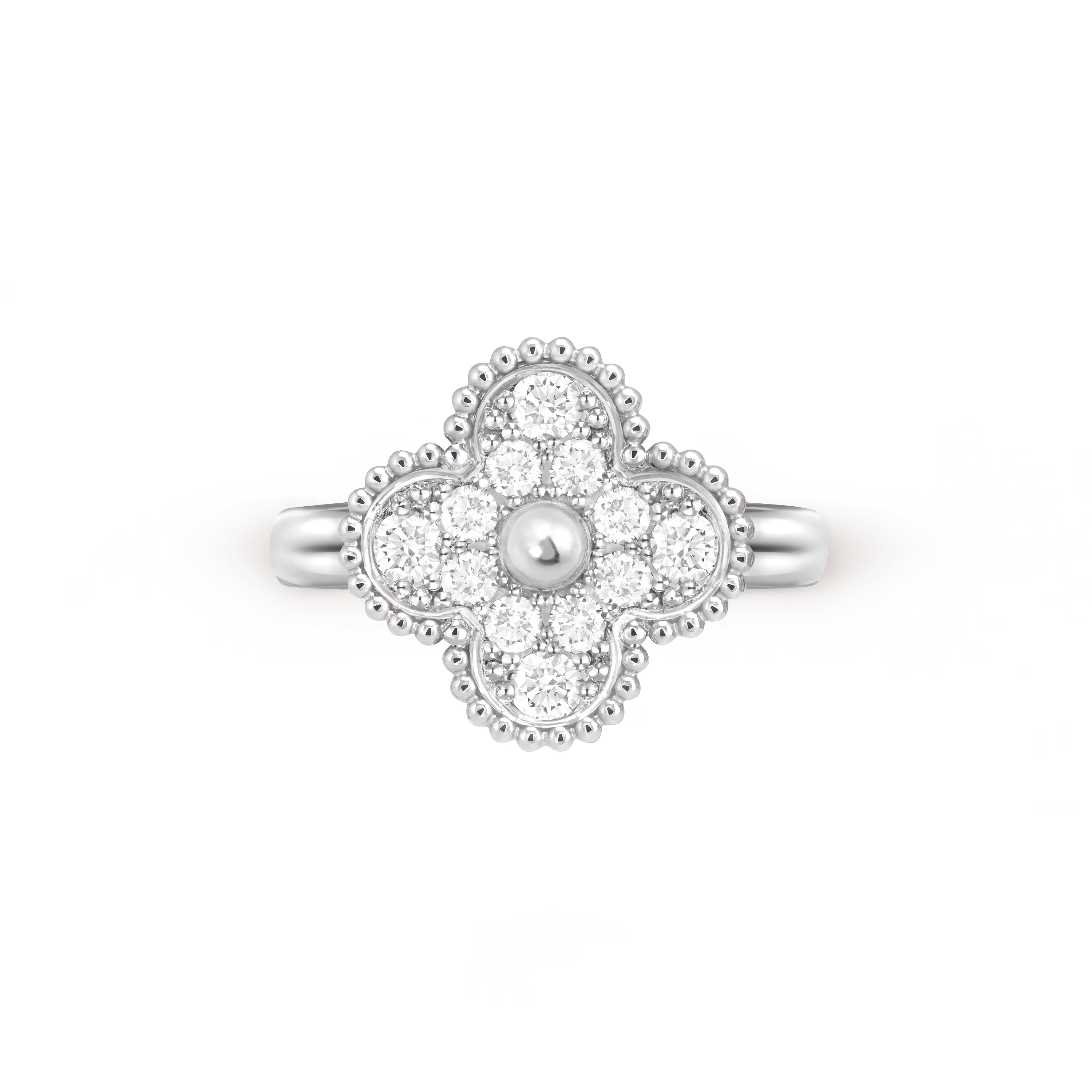 Crafted in your choice of 18K white gold for a luminous, contemporary radiance or 18K rose gold for a warm, romantic glow, the ring is crowned with a brilliant diamond at its center. This delicate sparkle enhances the natural symmetry of the motif and highlights the Maison’s devotion to light, detail, and refinement.